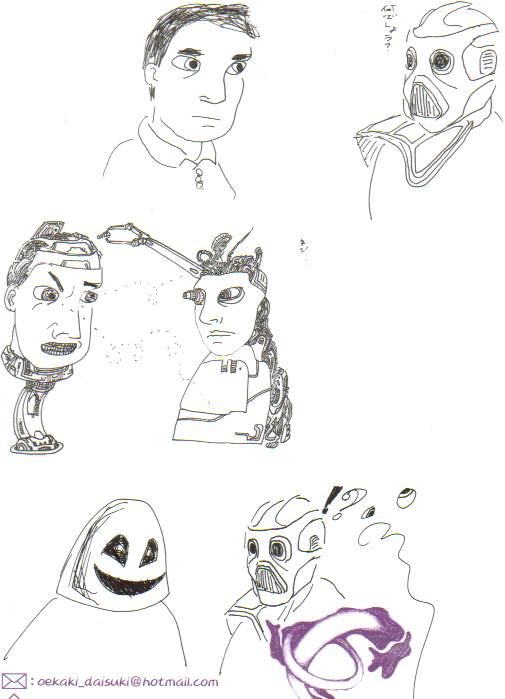 5_26_04 :怪しいマスコットと左右の腕が違うロボット / A fishy mascot and a robot